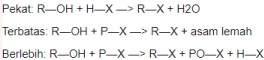 HX pekat (contoh HCl pekat), PX3 (terbatas), dan PX5 (berlebih). Contoh reaksinya adalah: